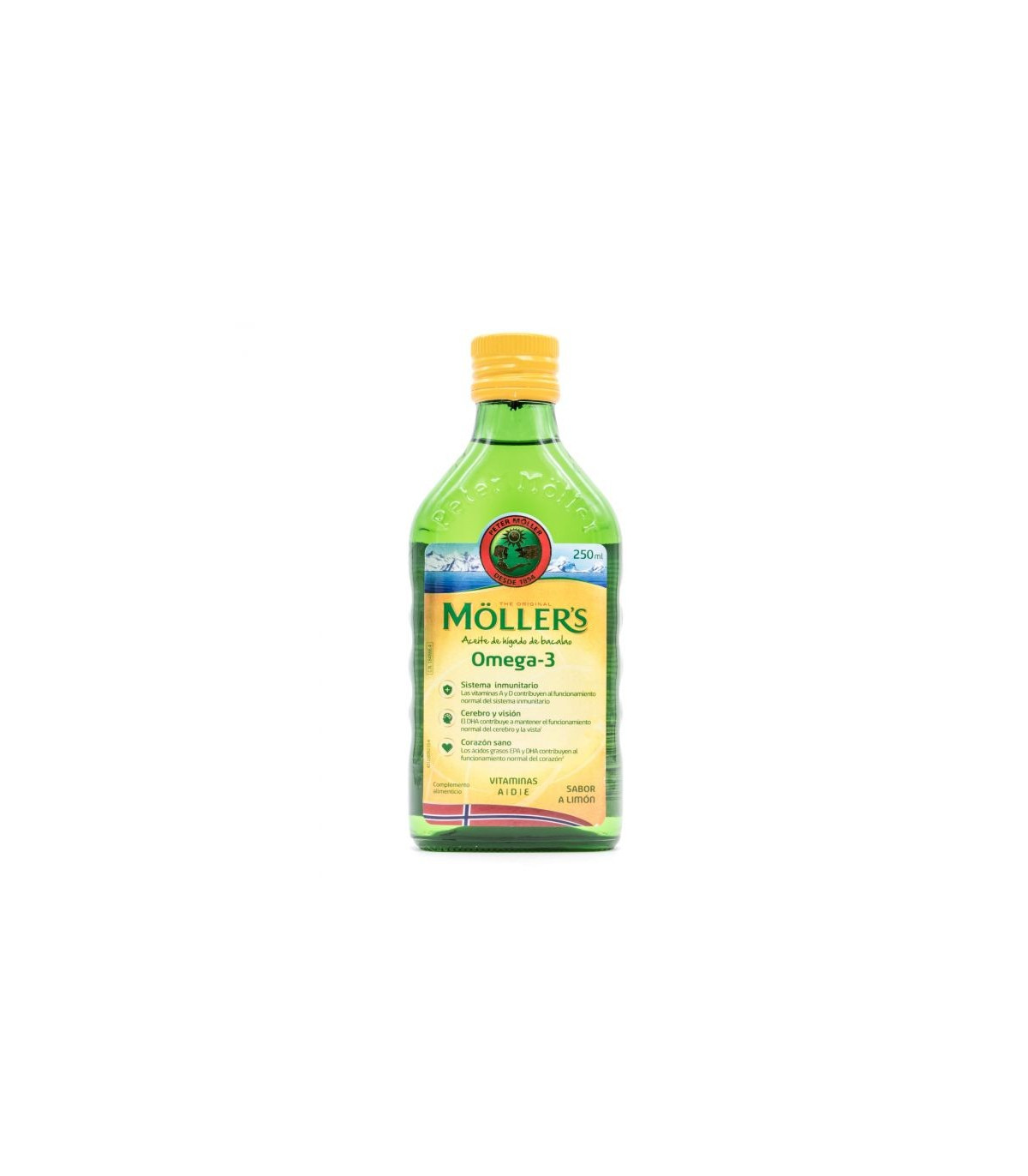 Aceite de hígado de bacalao rico en ácidos grasos EPA, DHA y vitaminas A, D y E, con propiedades beneficiosas para el organismo. Agradable sabor a limón. es especialmente rico en el ácido graso omega-3 DHA, que contribuye a mantener el funcionamiento normal del cerebro y la vista. Los ácidos grasos EPA y DHA contribuyen al funcionamiento normal del corazón. La vitamina D favorece el normal funcionamiento del sistema inmunitario y el mantenimiento de los huesos en condiciones normales. Además, es una vitamina necesaria para el crecimiento y el desarrollo normales de los huesos en los niños. La vitamina A contribuye al normal funcionamiento del sistema inmunitario y al mantenimiento de la visión en condiciones normales. La vitamina E protege las células frente al daño oxidativo. Con sabor a