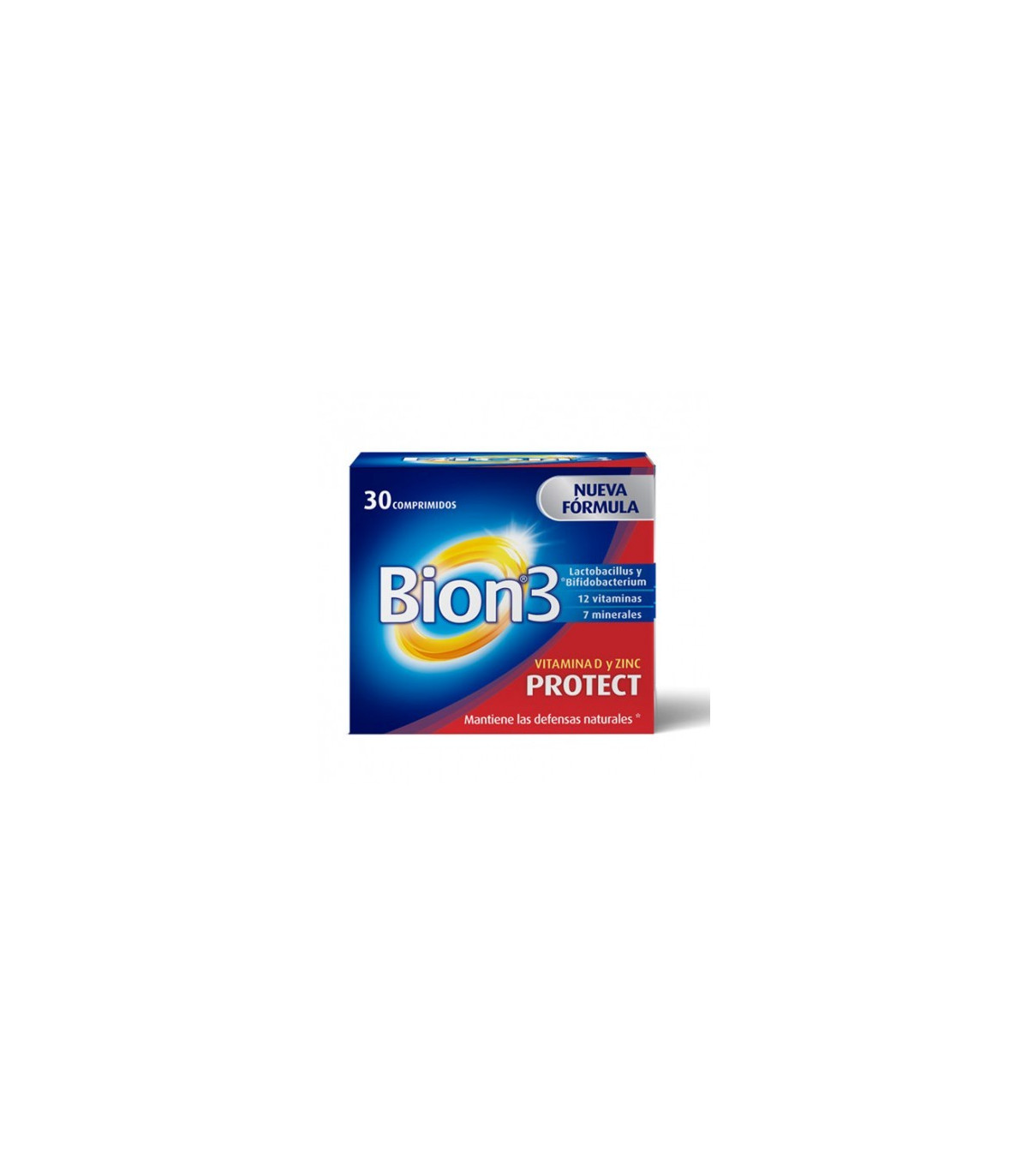 Complemento alimenticio dedicado al buen funcionamiento del sistema inmunitario.Bion 3 Protect Vitamina D y Zinc 30 Comprimidos se trata la solución perfecta para reforzar nuestro sistema inmunitario de forma sencilla y eficaz. Esto lo logra gracias a los poderosos ingredientes que encontramos en su composición, como: las vitaminas A, B6, B12, C y D, hierro, selenio y zinc que ayuda al funcionamiento del sistema inmunitario. Por otra parte, también encontramos: Vitaminas B1, B2, B3, B5, B6, B12 y C, biotina, hierro, manganeso y yodo, las cuales favorecen el funcionamiento del metabolismo ener