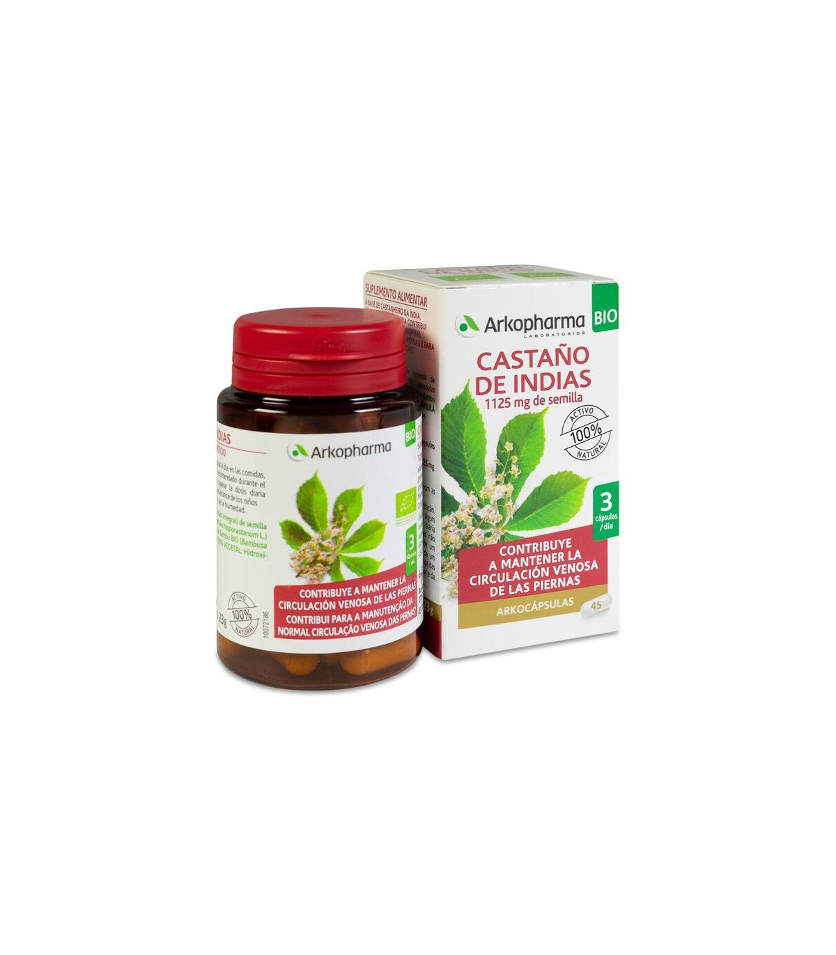 Arkocápsulas Castaño de Indias BIO es un complemento alimenticio a base de castañas de Indias que favorece la circulación sanguínea en piernas y la microcirculación en todo el organismo.