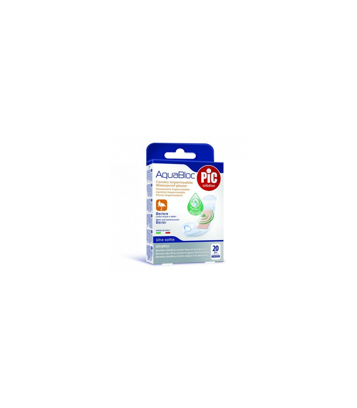 Apósitos transparentes, transpirables e impermeables.PIC Aquabloc Apósitos Antibacteriano 19x72mm actúan sobre las heridas no profundas en la piel. Son de capa fina, transparente, estéril y transpirable. Cuentan con una barrera impermeable que protege la herida de la suciedad, el agua y los agentes externos que puedan infectarla. Cuentan con un efecto de adhesión duradero le permite mantenerse adherido a la piel durante días.