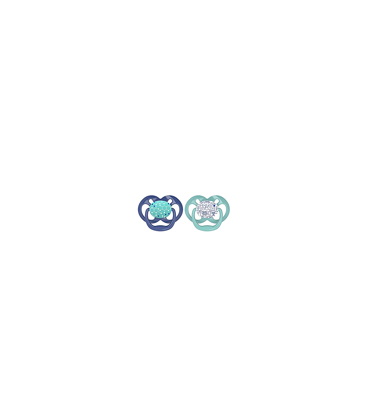 Chupete simétrico con tetina reversible, y con un diseño abierto del escudo que minimiza las irritaciones de la piel.