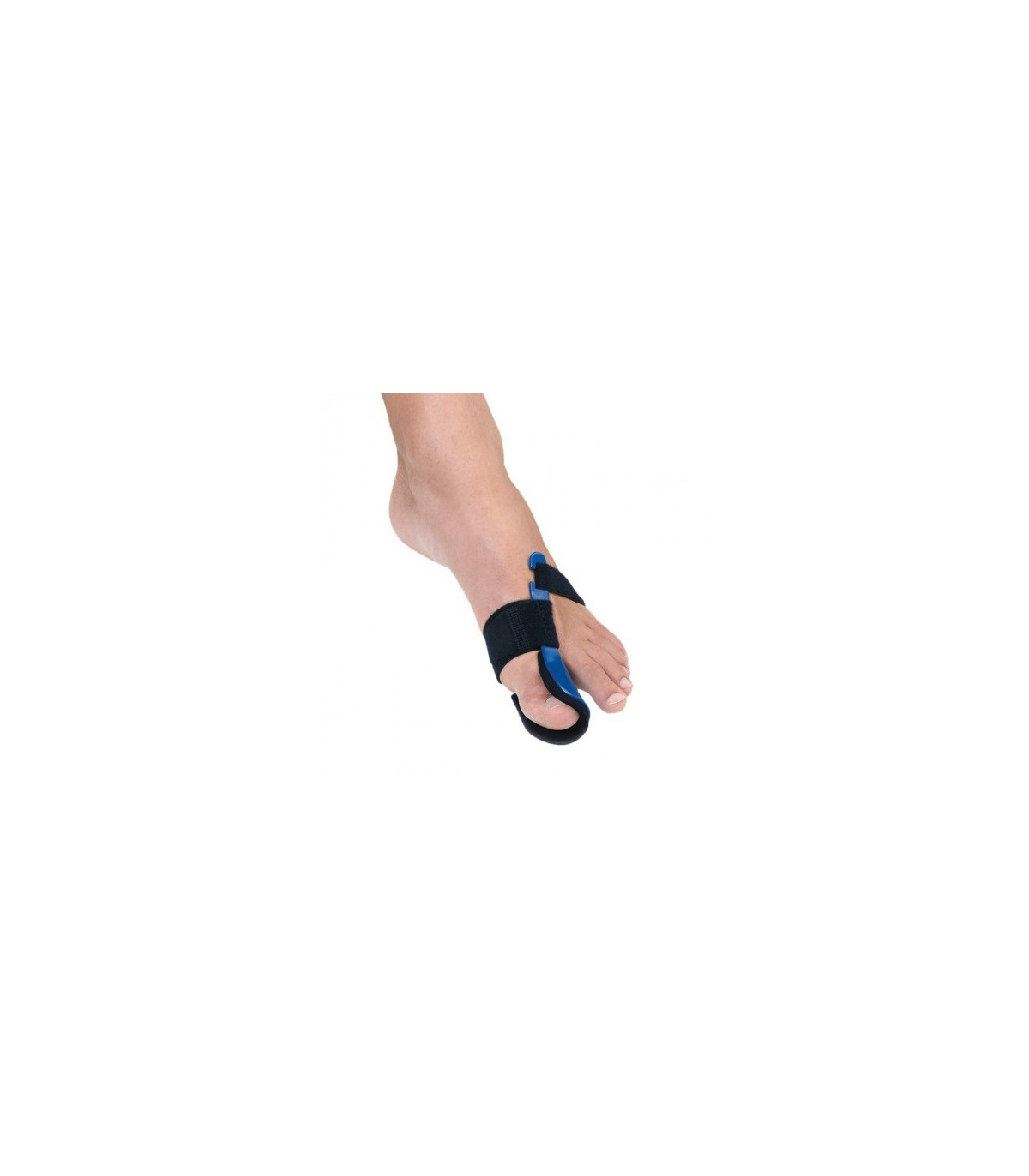 El corrector nocturno está elaborado en termoplástico y velour con cierre de microgancho. Posee una almohadilla amortiguadora en el dedo gordo la cual junto con la cincha de presión mantienen el primer radio alineado, en la posición deseada durante la noche, disminuyendo el dolor y evitando su posible evolución.