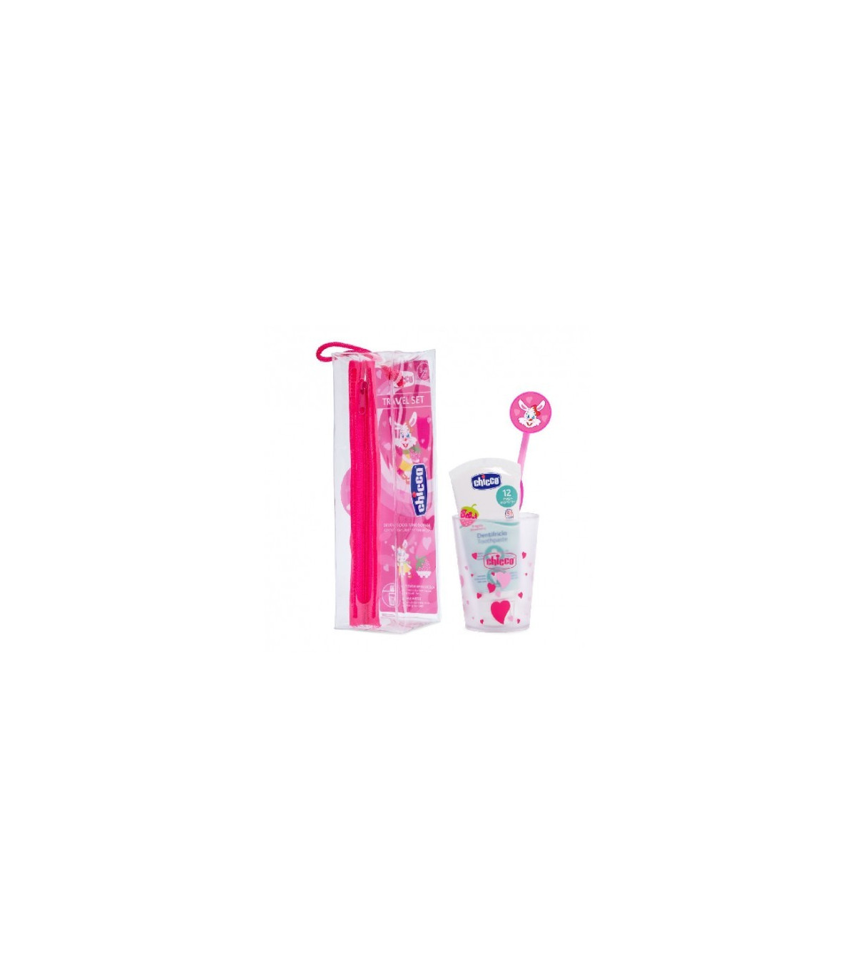 Pasta de dientes y cepillo para peques. Apto para viajes.Con Chicco Set Viaje Cepillo Y Pasta Rosa 50ml podrás mantener la higiene de tus pequeños en todo momento. Aprovecha su ligero formato con un cepillo de dientes y una pasta dental. Gracias a su pequeño tamaño, el cepillo de dientes es apto para que los niños mantengan una buena higiene bucal, eliminando los restos y bacterias que se puedan acumular tras la comida.
