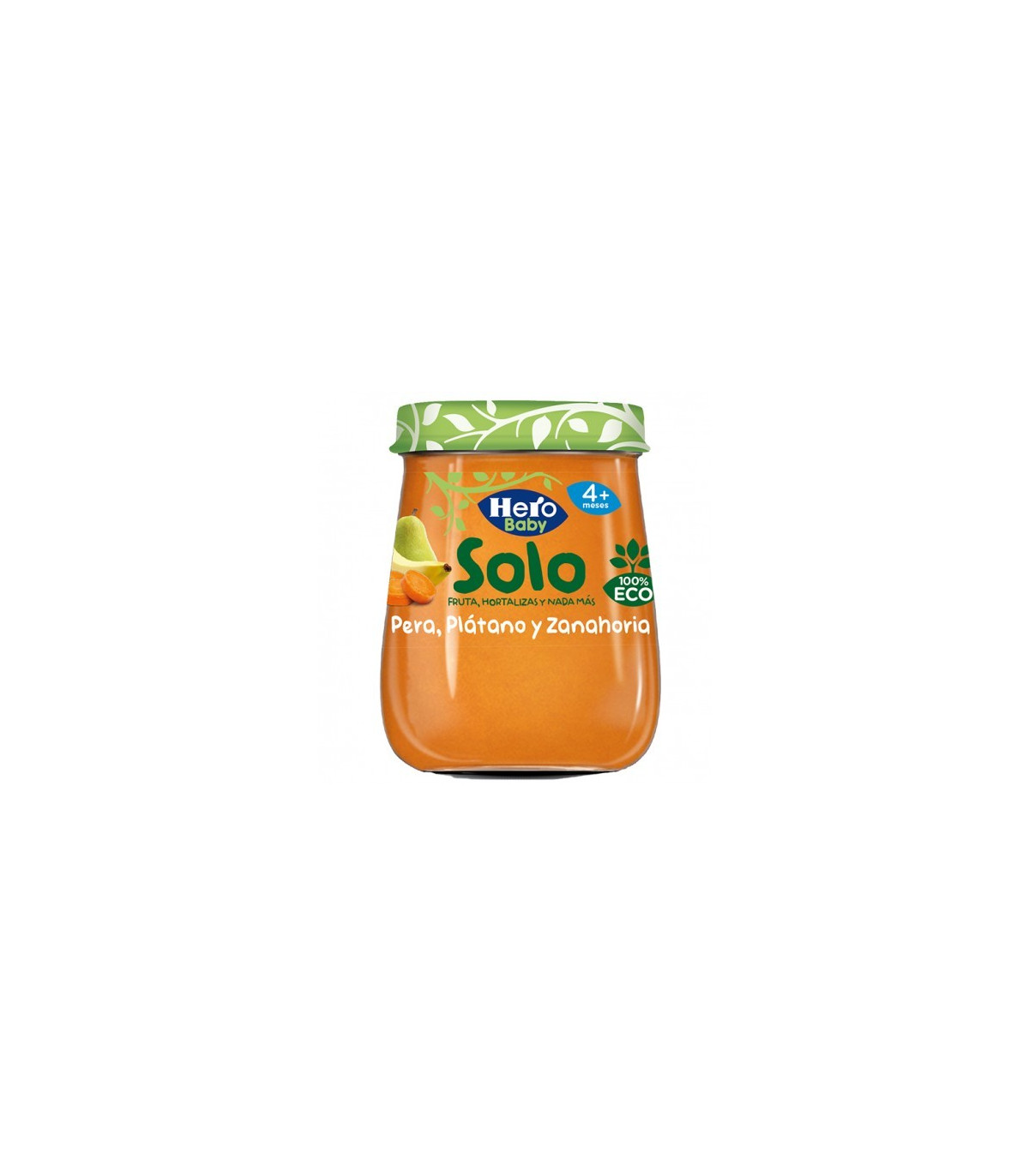 Para una correcta alimentación de los bebés,Hero ECO Solo Baby Pera, Plátano y Zanahoria 120g