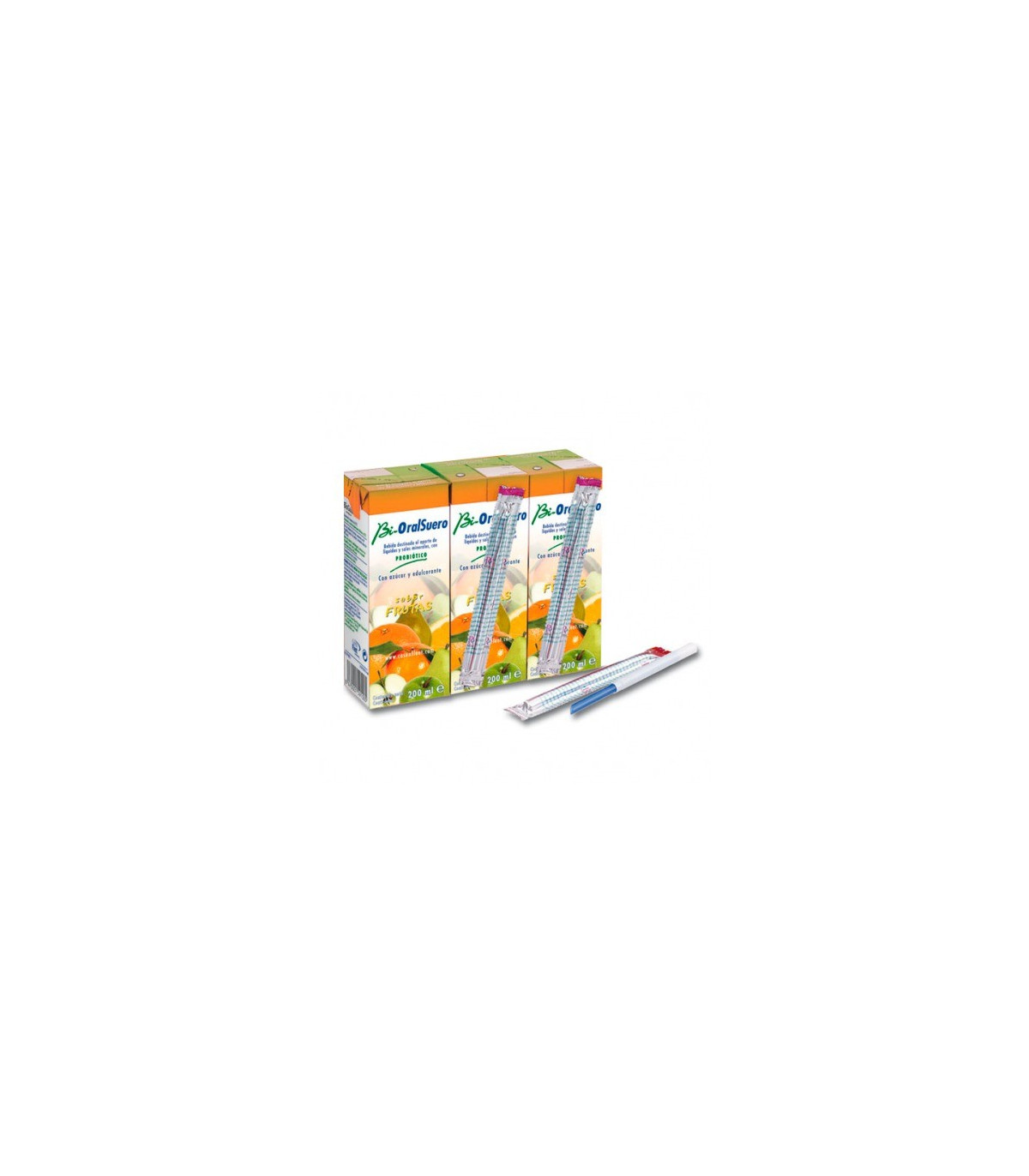 Bioralsuero Frutas 200ml 3 pack .recomienda tomar 2 o 3 envases al día con la pájita.