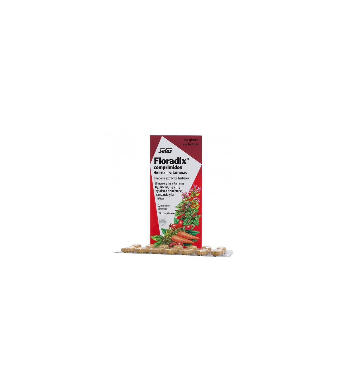 Floradix Comprimidos es un complemento alimenticio que contiene hierro, además de vitaminas B6 y B12 que ayudan a disminuir el cansancio y la fatiga y contribuyen a un normal metabolismo.