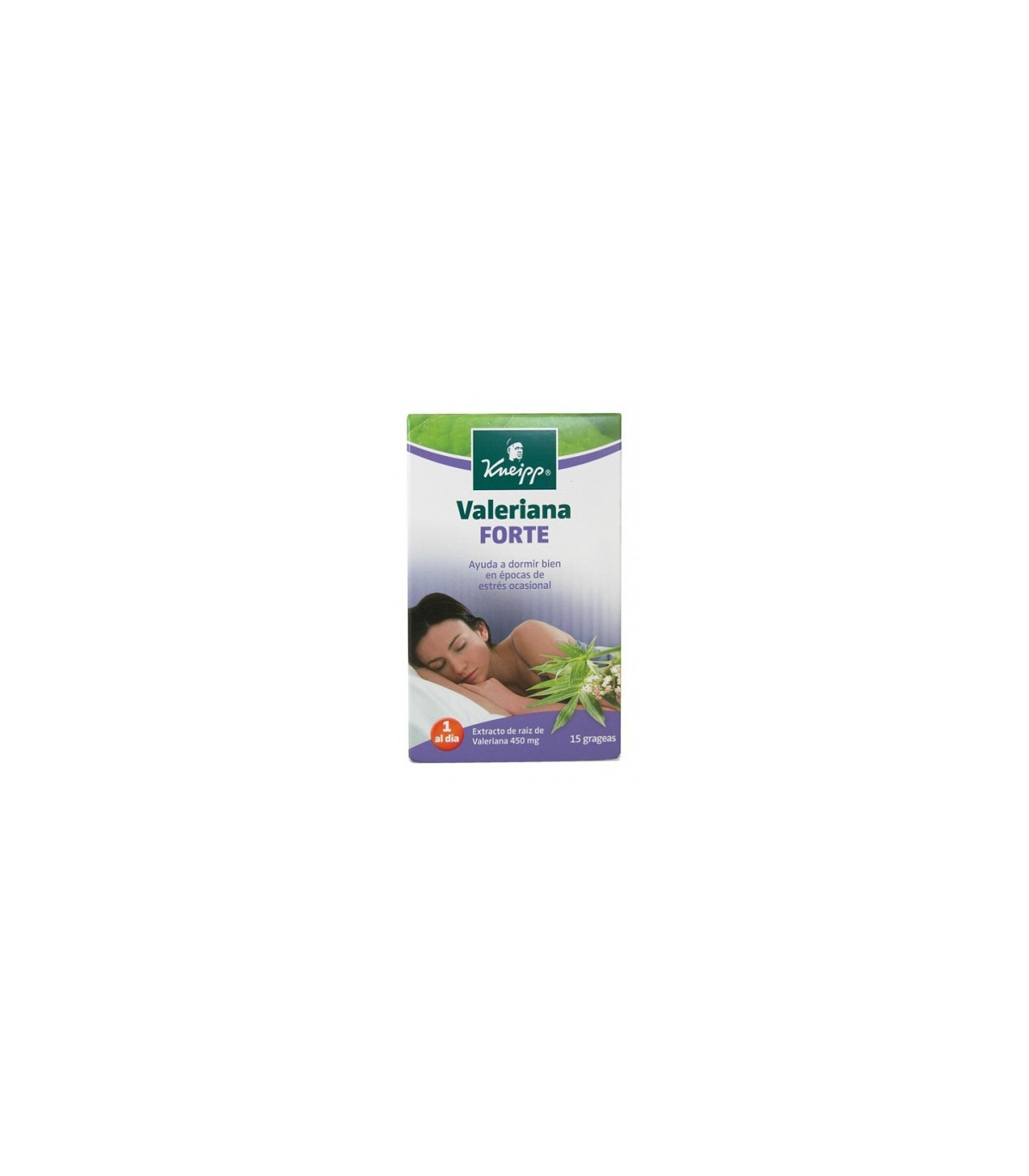 Cada gragea contiene 450 mg de extracto de valeriana, lo que le permite aliviar los episodios de estrés y favorecer el sueño.Kneipp Valeriana Forte 15 grageas es un producto destinado a relajar el cuerpo y la mente, actuando así como un calmante natural que favorece el descanso nocturno. Este complemento alimenticio está hecho a base de valeriana, una planta natural que ha sido usada desde hace muchos años para reducir el estrés ocasional y mejorar el sueño. Esta presentación viene en grageas para que su consumo sea fácil y rápido.