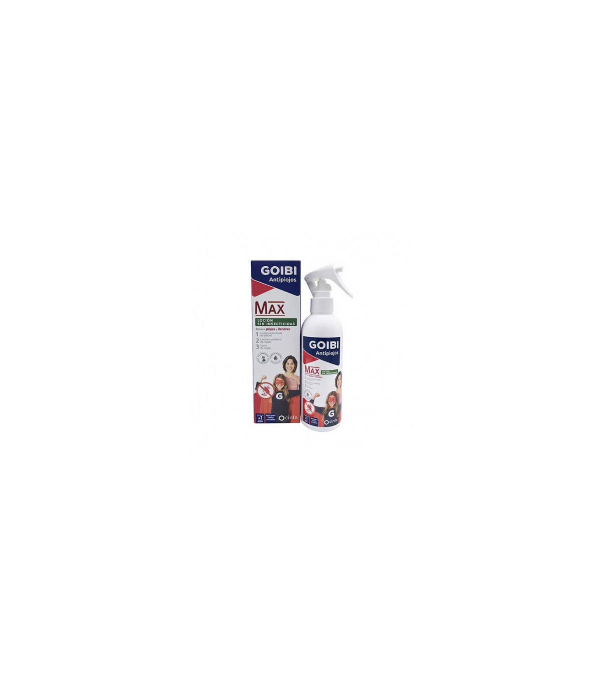 Goibi Antipiojos Max Loción Sin Insecticidas 200ml es una solución natural con una fórmula suave y sin insecticidas para hacer frente a los piojos. Goibi Max provoca la muerte natural de los piojos dado que el alcohol bencílico que contiene la loción impide que los piojos cierren sus espiráculos respiratorios, permitiendo que el aceite mineral los obstruya provocando así la asfixia de los piojos. Además, la fórmula de esta loción permite arrancar liendres. El envase contiene Loción pediculicida de 200ml y lendrera metálica y gorro de regalo.