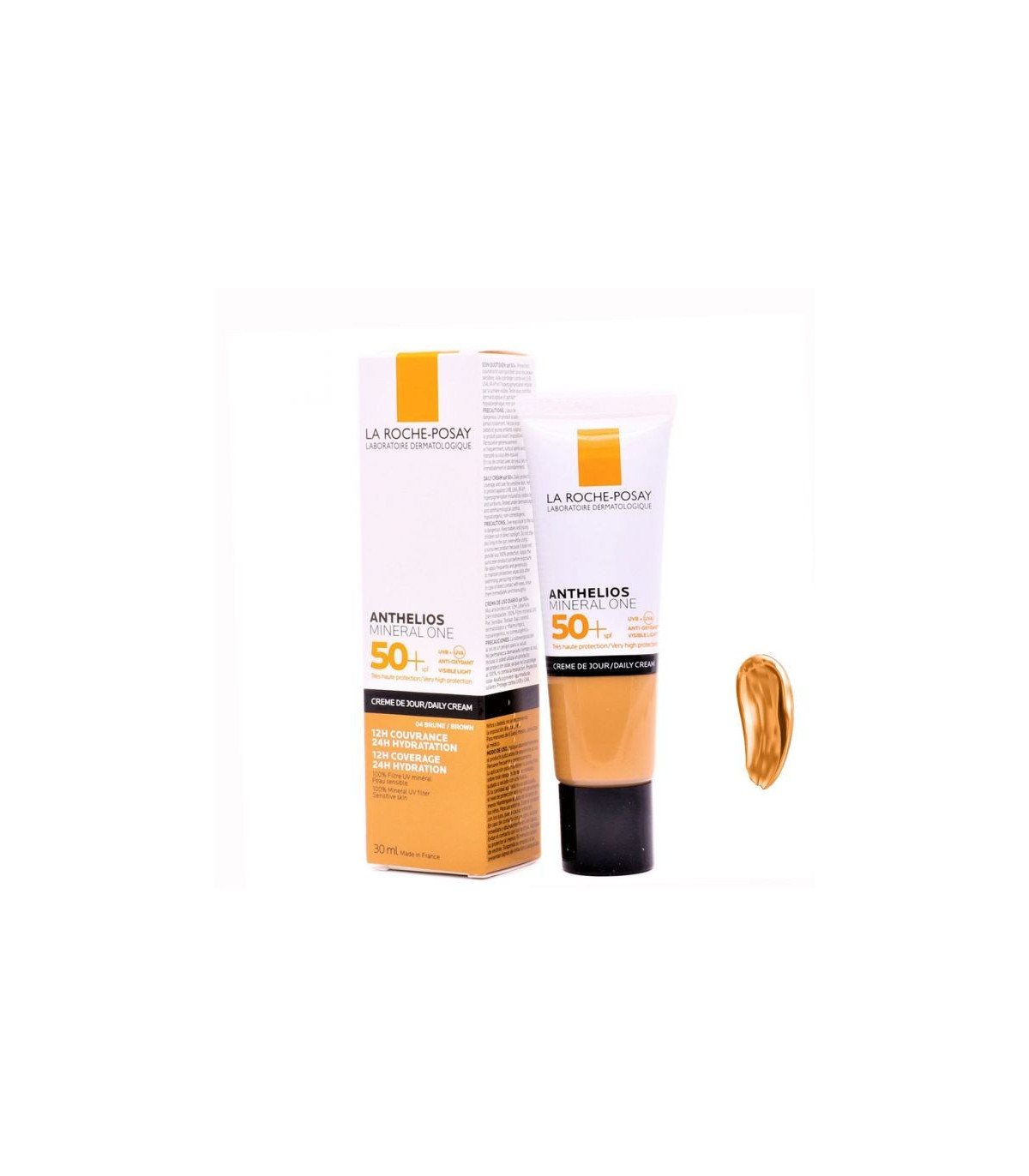 Anthelios Mineral One Crema Color 04 BROWN SPF50+ La Roche Posay 30ml Qué es Anthelios Mineral One Crema de Día Tono BROWN La Roche Posay SPF50+ Solar con color para uso diario . De muy alta protección solar, con 100% fitro UV mineral. Especial para pieles sensibles. Protege frente a los rayos UVB, UVA, luz visible con un factor de protección SPF 50+. Solar con color, maquillaje de buena cobertura hasta 12 horas. Hidrata durante 24 horas.Testado bajo control dermatológico y oftalmológico. Hipoalergénico. No comedogénico. Cómo se aplica Anthelios Mineral One Crema de Día con Color La Roche Posay SPF50+ Se aplica diariamente antes de la exposición solar sobre rostro, generosa y uniformemente. Después se reaplica con frecuencia para mantener la protección, en especial después de transpirar, d