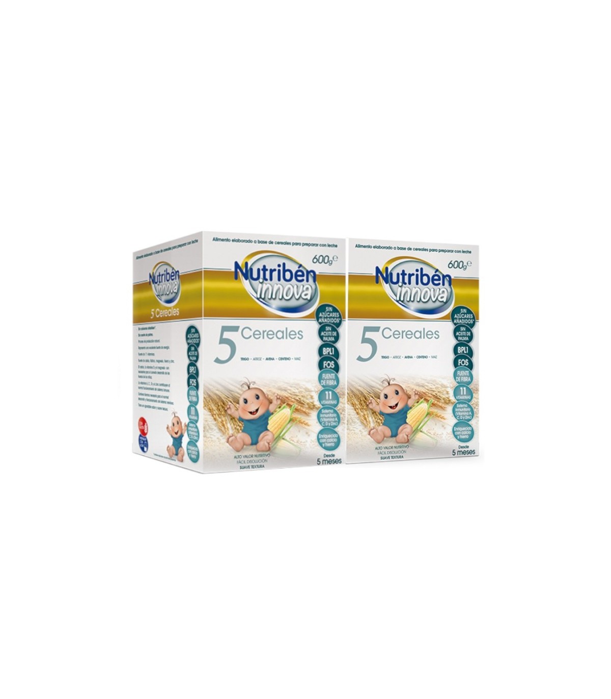 Nutriben Innova 5 Cereales 2 x 600 g Duplo. Papilla instantánea desarrollada para favorecer una alimentación completa, un equilibrio nutricional adecuado y siempre con los máximos estándares de seguridad.