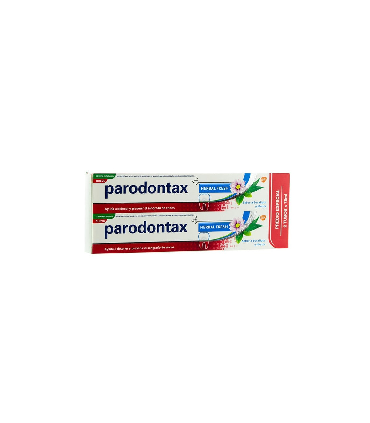 parodontax HERBAL FRESH es una pasta de dientes que contiene bicarbonato sódico y está clínicamente probada para ayudar a detener y prevenir el sangrado de encías eliminando la acumulación de placa bacteriana, principal causa del sangrado de encías, y así llegar a conseguir unas encías más sanas y unos dientes más fuertes. Además, tiene un toque herbal único que combina eucalipto, menta y extractos de jengibre con el que proporciona una sensación de limpieza y frescor. Se recomienda usar parodontax HERBAL FRESH a diario, ya que contiene flúor que ayuda a fortalecer los dientes.